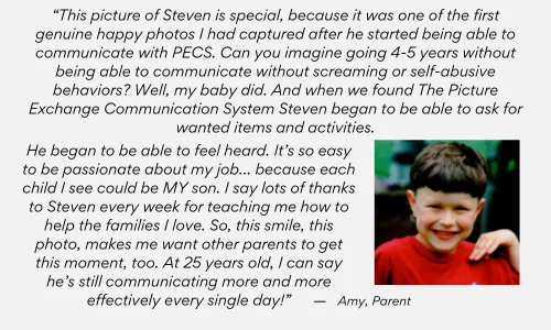 We can help you to increase your child’s communication through the Picture Exchange Communication System. The Picture Exchange Communication System. (PECS)® is a way of communicating using pictures and symbols. We train parents in how to use the system with their autistic child who may not speak at all or whose speech may be difficult to understand.